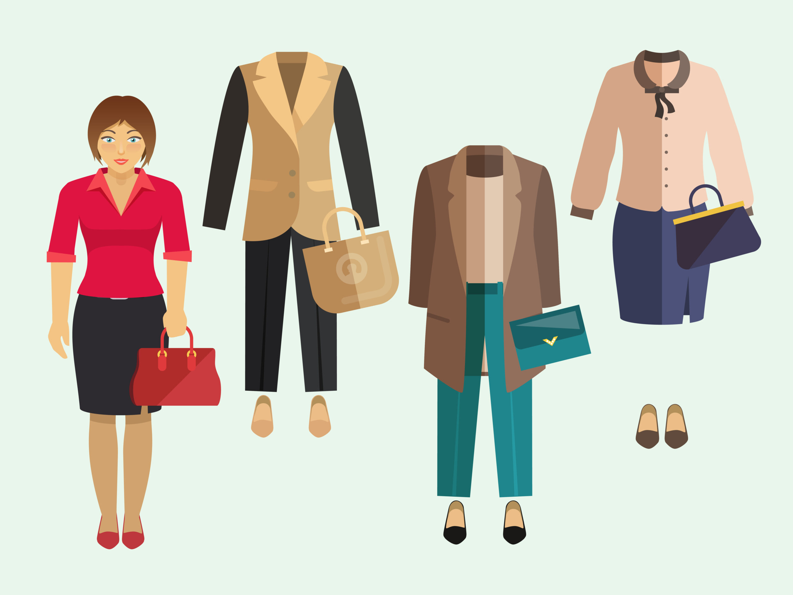 - For women’s official clothing, simple accessories should be chosen, like formal bags and purses
